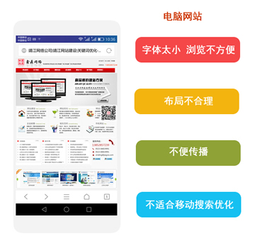 | 一般的网站在手机上虽也能打开访问,但PC版网页在手机上缩放后将出现: |